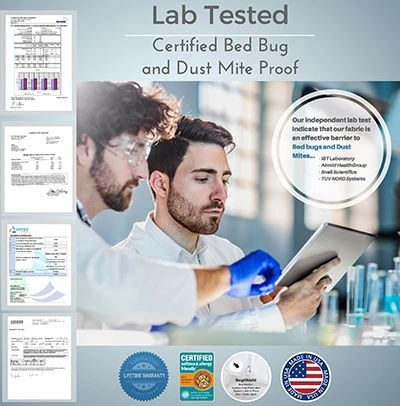 All of our BedCare™ encasing fabrics have been tested by an independent lab and the results show that bed bugs cannot pass through these fabrics or bite through these fabrics. Bed bug eggs cannot pass through the fabric or zipper either.