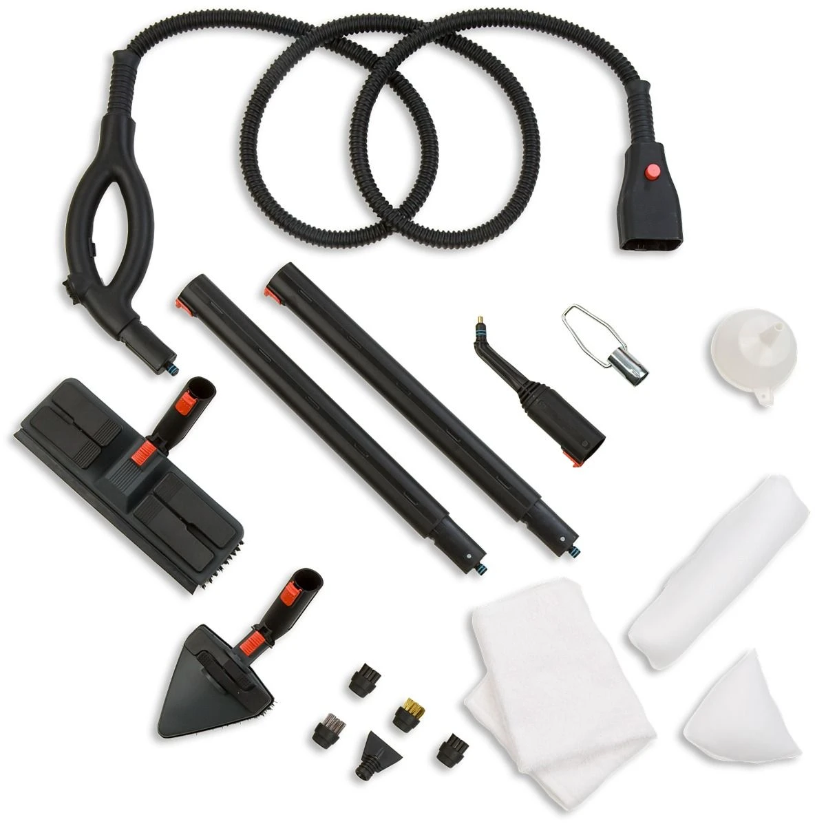 Numerous high-quality accessories and attachments accompany the Brio PRO 1000CC. Specifically, the Brio comes with two extension wands, a steam hose with built-in control handle, a floor brush attachment, upholstery brush attachment, floor cushion cloth, upholstery cushion cloth, and traditional cloth. It also includes a stainless steel brush attachment, a brass brush attachment, two nylon brush attachments, an angled nozzle attachment, a scraper attachment, a water funnel, and a water tank key.