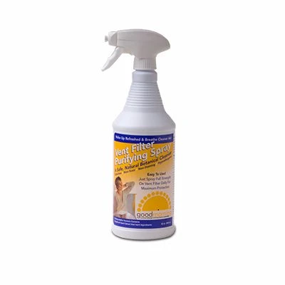 Just a few quick sprays of this filter solution on a vent filter will help eliminate mold spores from coming into a room. Goodmorning Purifying Filter Spray is a specially formulated, all-natural, botanical cleanser that protects, purifies, freshens and deodorizes any surface, not just filters. This filter solution is the perfect odorless, non-toxic way to reduce mold entering your bedroom through the heating and cooling system. 32-oz quart bottle includes a hand trigger sprayer.