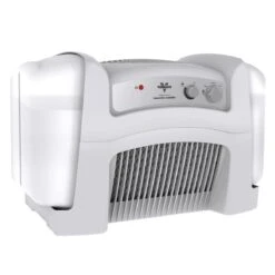 Accessible push button controls allow you to choose your humidity level or select Continuous output or Fan Only operation (fan only, without humidity). The Evap2’s built-in humidistat automatically regulates humidity output when not in Continuous or Fan Only mode. Three fan speeds include High, Low or Auto. In the Auto setting, the fan will intelligently fluctuate up or down to maintain the set humidity level. 1-gallon capacity tank. 2-gallon output every 24 hours. Humidifies up to 600 sq. ft. 5-Year Limited Manufacturer’s Warranty.